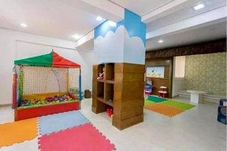 Condomínio com lazer completo e segurança, oferecendo portaria 24 horas, elevador, academia, piscina, quadra esportiva, salão de festas, churrasqueira, playground, sauna, salão de jogos e brinquedoteca.
